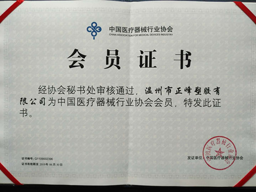 熱烈祝賀正峰塑膠順利通過審核,正式成為中國(guó)醫(yī)療器械行業(yè)協(xié)會(huì)會(huì)員。