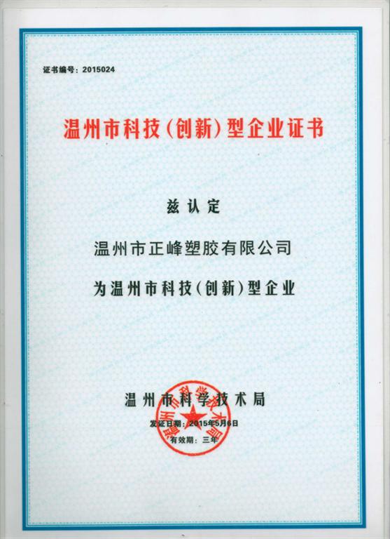 溫州市科技(創(chuàng)新)型企業(yè)證書